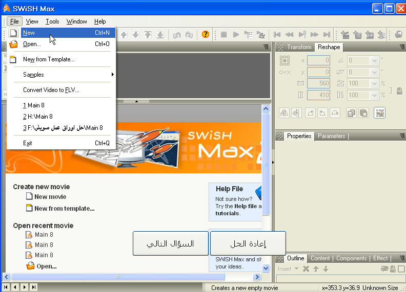 موضوع: Apprendre SwishMax10 عربي (زيارة 60772 مرات)